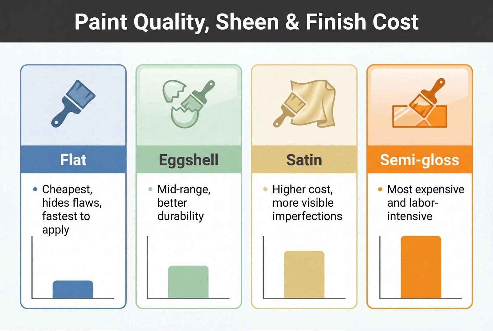 Paint choice affects cost more through materials than labor, but finishes matter.